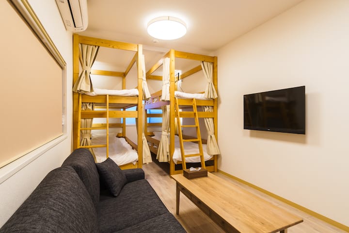 2 minúty chôdze od stanice Fukumachi.Je to zrekonštruovaný starý súkromný dom v tichej a bezpečnej obytnej štvrti.V priestore, ktorý je pohodlný a zároveň zachováva japonskú atmosféru, sa môže ubytovať až 6 osôb.Ideálne miesto na spoločný pobyt rodín a priateľov.