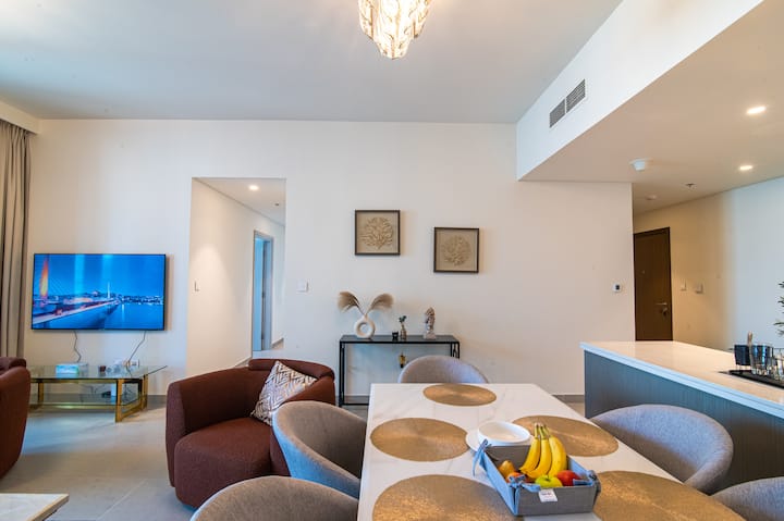 Ubytujte sa v srdci centra Dubaja v tomto luxusnom 3-izbovom apartmáne s úchvatným výhľadom na mrakodrap Burdž Chalífa a Dubajskú fontánu z každej izby. Len 3 minúty chôdze od nákupného centra Dubai Mall a pár krokov od dubajského metra máte ideálnu polohu na preskúmanie najlepších atrakcií, ako sú Dubajský prístav a pláž JBR. Oddýchnite si na vlastnom balkóne s nádherným výhľadom na panorámu, vychutnajte si luxusné vybavenie a zažite to najlepšie z nakupovania, stravovania a zábavy v Dubaji - to všetko hneď pred vašimi dverami!