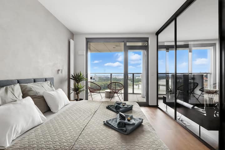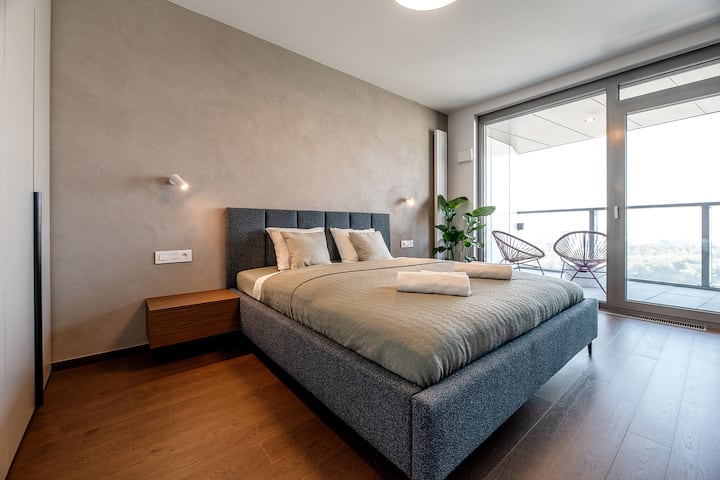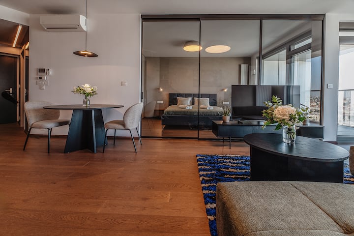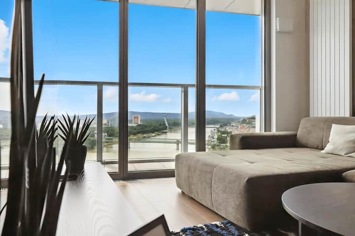 Premium apartmán, výhľad na rieku a staré mesto, parkovanie zdarma
