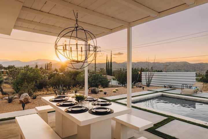 Oddýchnite si v našom novo zrekonštruovanom útočisku na Juniper Terrace, ktoré je ideálne pre rodiny a priateľov, ktorí hľadajú pokojný únik. Ohromujúce stromy Joshua obklopujú náš štýlový dom s rozsiahlymi oknami s úchvatným výhľadom na púšť. Oddýchnite si v súkromnom bazéne a kúpeľoch a vychutnajte si veľkolepé západy slnka nad horou Gorgonio. Vnútri moderná, otvorená dispozícia podporuje pohodlie a spojenie. Preskúmajte miestne atrakcie alebo sa jednoducho vyhrievajte v pokoji. Pokoj čaká na váš príchod!