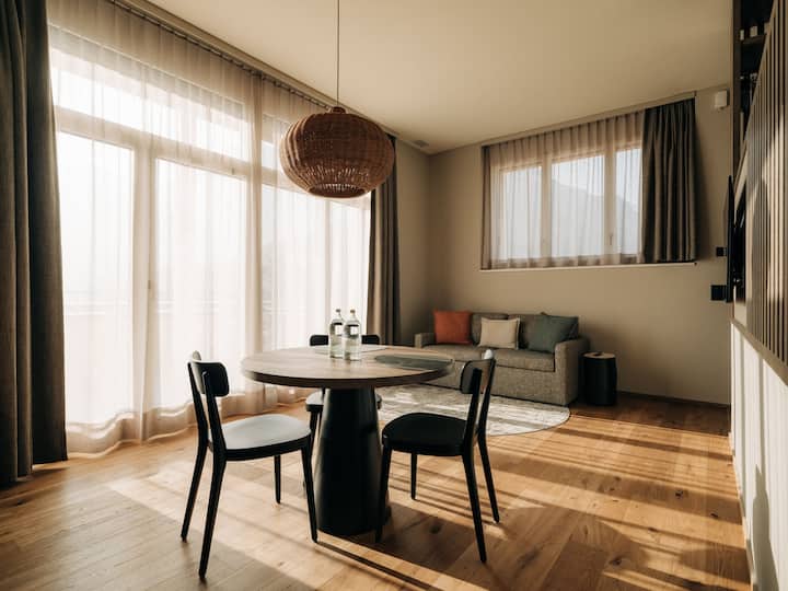 38 jedinečných apartmánov so službami s vlastným stravovaním s výhľadom na impozantné horské pozadie je ideálnou základňou pre vašu nezávislú dovolenku v Bernskej vysočine. Ako turistický a cyklistický hotel nájdete dostatok priestoru pre svoje lyžiarske vybavenie a horský bicykel. Pre našich najmladších hostí ponúka herný raj veľa zábavy a akcie.“