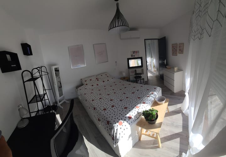 Vlastná izba v bývaní a k tomu prístup do spoločných priestorov.