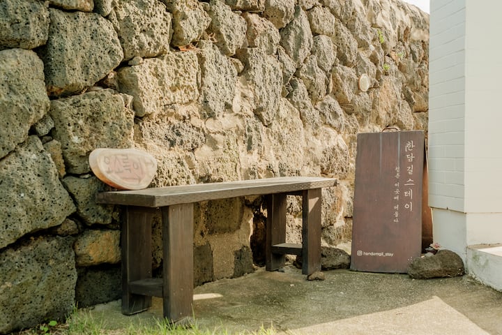 Ubytovanie Handamgil Stay sa nachádza na pobrežnej ceste Aewol v meste Jeju a ponúka útulný pobyt s interiérom inšpirovaným ostrovom Jeju, ktorý ponúka relaxáciu od okamihu príchodu. ✨