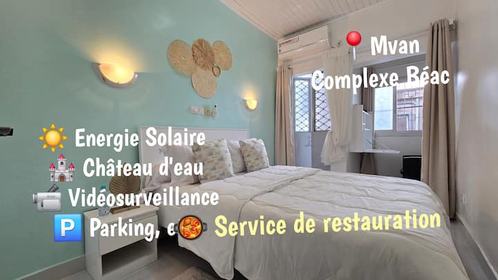 Vitajte v Kharism 'Apparts, zariadenej turistickej rezidencii v Yaoundé, štvrti Mvan Complexe Béac. Som Evelyne, vedúca rezidencie.