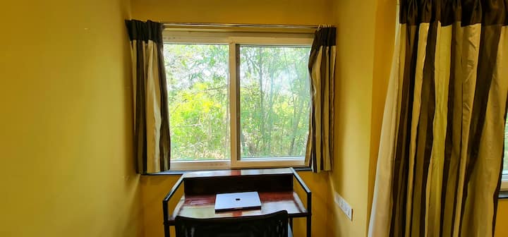 Izba s Wi-Fi, ktorá je vhodná na prácu.