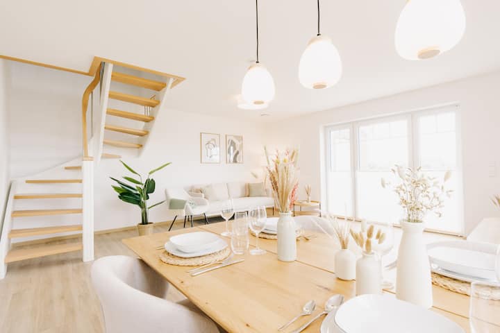 Naše pobrežné apartmány sú ideálnym miestom na uvoľnený a pohodlný pobyt vo východnej Frízii. V našich vysokokvalitných a láskyplne zariadených predmetoch sa severský štýl stretáva s útulnou útulnosťou. Teplé drevené tóny a svieže farby poskytujú pohodlie po rušnom dni v zozname svetového dedičstva Waddenského mora, po slnkom zaliatom ostrove alebo vzrušujúcom výlete do rôznorodého vnútrozemia.