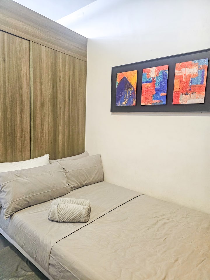 Ubytujte sa v modernom 1-spálňovom apartmáne s balkónom s výhľadom na mesto, rýchlym Wi-Fi a televízorom s Netflixom. Perfektne umiestnené v blízkosti MRT, nákupných centier a reštaurácií, plus bazén a plne vybavená kuchyňa pre pohodlný pobyt v meste.