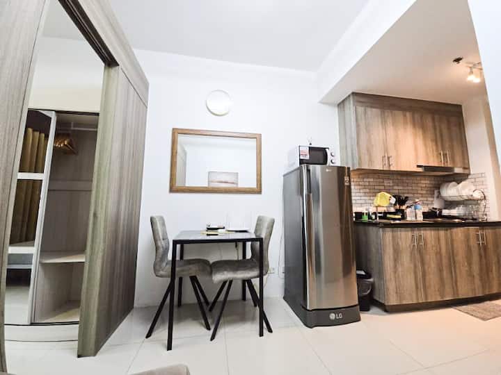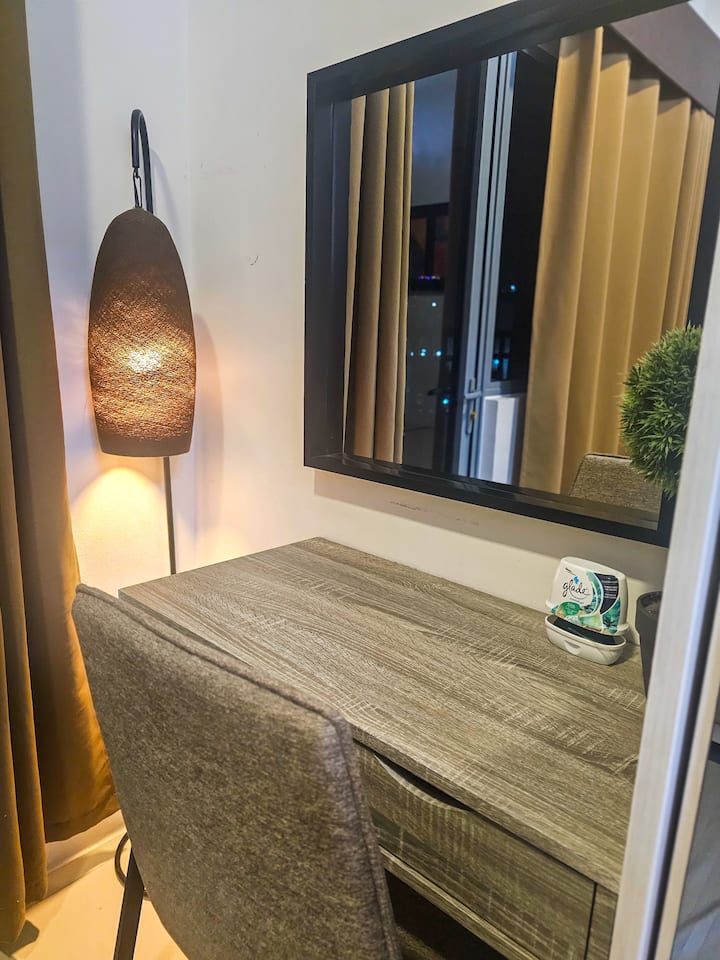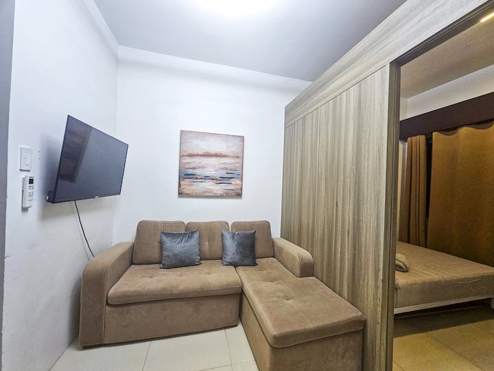 Je to útulná jednotka s pekným balkónom, ktorá sa nachádza v centre mesta Mandaluyong (Manila), pozdĺž EDSA a v pešej vzdialenosti od Greenfield District, Shaw MRT, Shangri-La Plaza, Megamall. At Fame Residences GF - Savemore, Watson, Alfamart, BDO, Popeyes, Coco, Starbucks, Tori King.