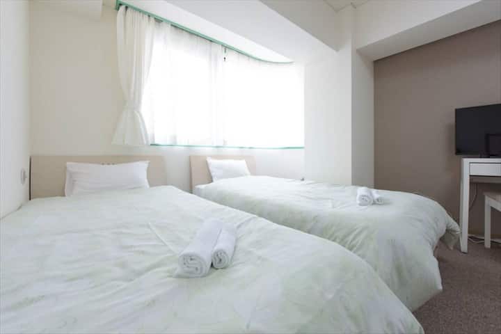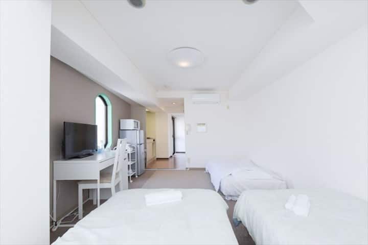 Priestranný 1LDK (26 ㎡)! Pohodlne sa vyspia až 3 osoby!Ideálne pre malé skupiny alebo pár s 2 samostatnými lôžkami a 1 rozkladacou pohovkou.