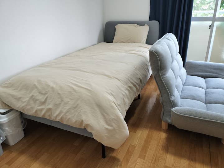 Môžete obsadiť a používať samostatnú izbu v spoločnom dome v tichej obytnej štvrti obdarenej prírodným prostredím.Je to asi hodinu cesty vlakom alebo autom od Tokia a má dobrý prístup do mesta.Má rôzne zariadenia a vybavenie, preto sa odporúča na prácu na diaľku a mesačné služobné pobyty.Ponúkame zľavu, keď ju použijete na týždeň alebo dlhšie.