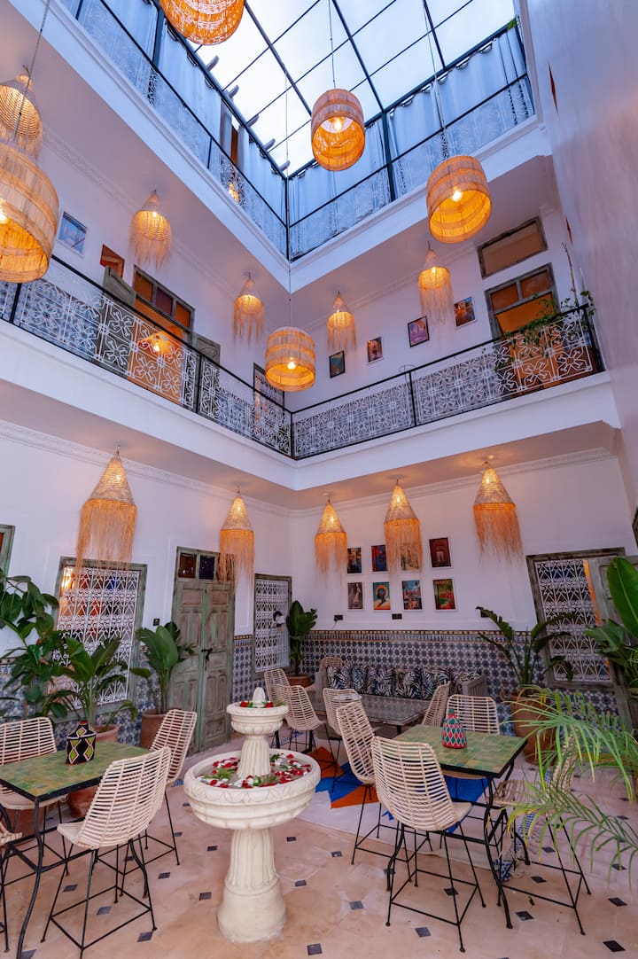 Riad IN Marrákeš sa nachádza v Marrákeši, 1 km od orientačného múzea a necelý 1 km od centra. Ponúka klimatizované ubytovanie s bezplatným Wi-Fi a záhradou. Má recepciu s nepretržitou prevádzkou, reštauráciu a slnečnú terasu.