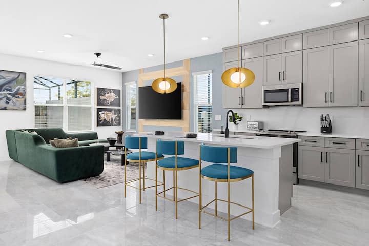 Zbaľte si plavky a užite si to vo svojej súkromnej oáze pri bazéne. Natiahnite sa s knihou na ležadle pri bazéne alebo plavák, zatiaľ čo deti robia špliechanie alebo si vychutnávajú priateľskú súťaž pri stolnom futbale. Potom všetkých pripravte na jedlo pod šírym nebom okolo vášho tienistého stola lanai. Toto je Florida, ktorá žije v tom najlepšom svetle!