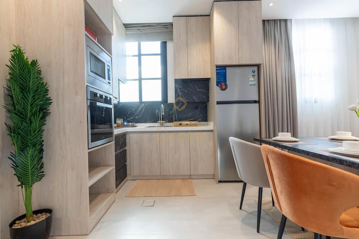 Vychutnajte si výnimočný pobyt v srdci Rijádu, len pár krokov od najlepších atrakcií mesta, ako sú Boulevard Riad City, Boulevard World a štadión Crescent, a len pár minút od finančného centra Kafed.