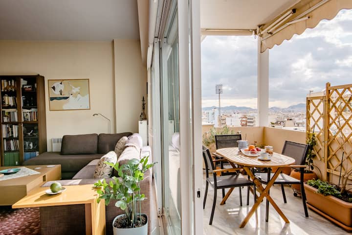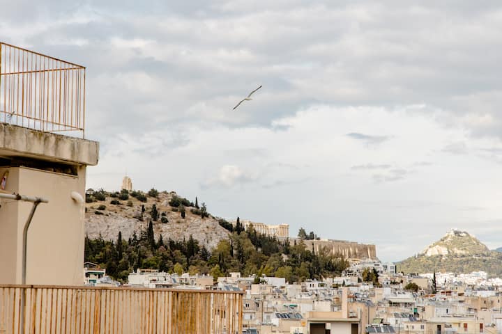 Priestranný apartmán s výhľadom na Akropolu 1,8 km od Plaky/centra