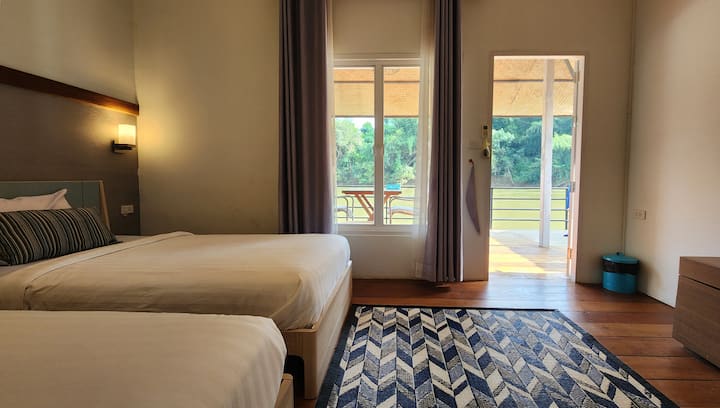 Hausbót s oddelenými lôžkami pri rieke