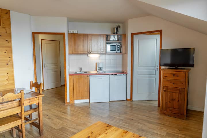 V obývacej izbe budete mať pohovku a televízor, ako aj plne vybavenú kuchyňu: umývačku riadu, kávovar s filtrom, rýchlovarnú kanvicu, hriankovač atď. K dispozícii je balkón s výhľadom do údolia spreja.