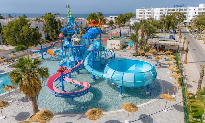 Dvojspálňový oddychový priestor s výhľadom na more a prístupom do vodného parku