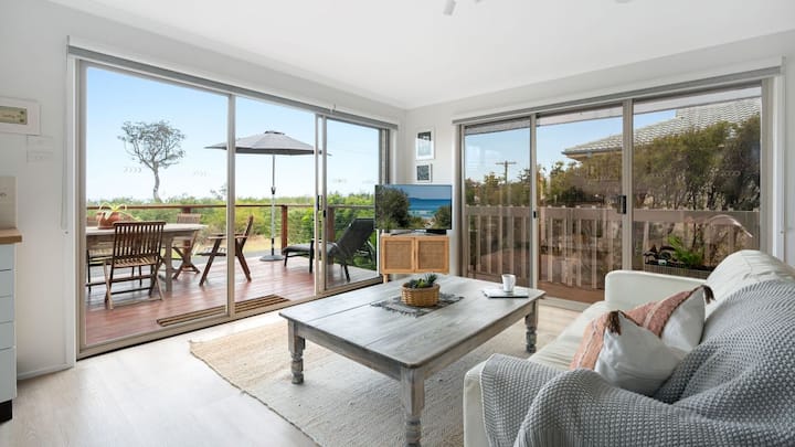 Vstúpte do Thistledoo a okamžite sa cíťte pohodlne vo svojej očarujúcej zmesi originálneho charakteru plážového domu a moderného vybavenia. Oddýchnite si v hornom obývacom priestore, kde klimatizácia s reverzným cyklom a stropné ventilátory udržiavajú pohodlie po celý rok. Plne vybavená kuchyňa sa môže pochváliť všetkým, čo potrebujete na prípravu rodinných sviatkov, vrátane kávovaru Nespresso a NutriBulletu pre pohodlie na cestách. Zostaňte v spojení s Wi-Fi, 2 televízormi, Apple TV a Bluetooth reproduktorom. Toto bývanie s premysleným dispozičným riešením a plne oploteným dvorom vhodným pre deti je toto bývanie navrhnuté na bezstarostnú dovolenku.