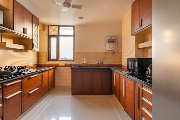 Tento nádherný apartmán ponúka bezkonkurenčnú zmes luxusu, pohodlia a pohodlia. So svojimi štýlovými interiérmi, špičkovým vybavením a úchvatnými výhľadmi slúži ako oáza v srdci Jaipuru. Či už cestujete za romantickým výletom, rodinnou dovolenkou alebo služobnou cestou, toto bývanie sľubuje pobyt bezkonkurenčnej elegancie a pohodlia.