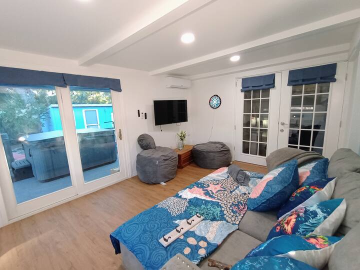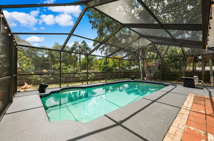 útočisko, ktoré ponúka dokonalú rovnováhu medzi pohodlím a štýlom. Od okamihu, keď vstúpite dovnútra, si všimnete príjemnú a príjemnú atmosféru, ktorú sme pestovali, aby ste sa cítili ako doma. Užite si súkromný bazén v klietkach s vírivkou na veľkom bujnom dvore s malebným priestorom na piknik za bazénom, ktorý zahŕňa pohodlné posedenie a ohnisko. Môžete si to tiež užiť.