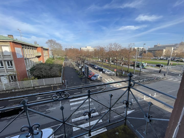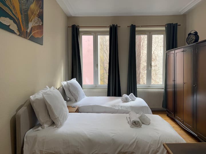 Váš pobyt v číslach: 25 minút pešo do katedrály, 30 minút pešo do Petite France, 300 m od Parc Contades, 50 m od električkovej stanice Lycée Kléber s linkou E s linkou E do Európskeho parlamentu a linkou B do centra mesta, 50 m od autobusovej stanice Lycée Kléber s linkou 2, ktorá spája hlavnú stanicu Strasbourg, stanicu Vélohop priamo pred budovou (samoobslužná požičovňa bicyklov), stanicu na zdieľanie áut Citiz priamo pred budovou.