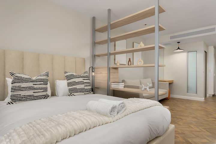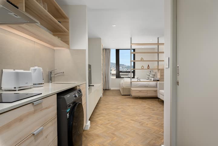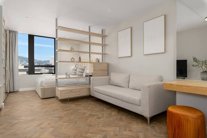 Tento luxusný štúdiový apartmán sa nachádza v srdci CBD a ponúka ubytovanie v štýlovom prostredí, kde sa môžete stretávať, nakupovať, ochutnávať, objavovať a ubytovať. Perfektne sa nachádza v kultúrnej štvrti mesta, v blízkosti CTICC a len kúsok od sviežej zelene The Company Gardens. Práve odtiaľto môžete skutočne zažiť Kapské Mesto v celej jeho kráse. Len malebná 10 - 15 minút jazdy autom od Stolovej hory a pláží Clifton a Camps Bay.