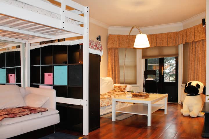 Vlastná izba v bývaní a k tomu prístup do spoločných priestorov.