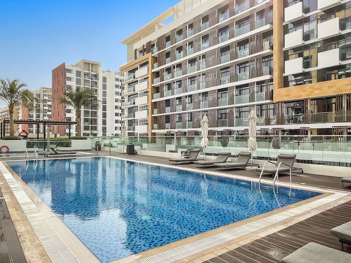 1 spálňa s výhľadom na bazén | Azizi Riviera 7, Meydan