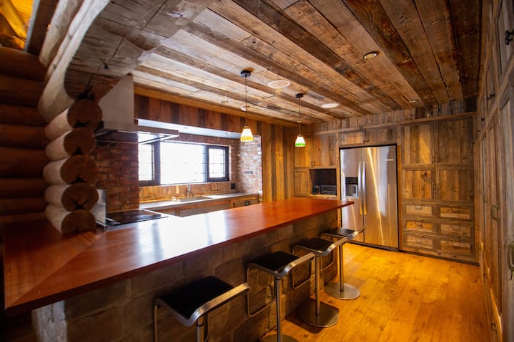 Luxusné drevo pochádza zo starej farmy so 150-ročnou históriou a je použité od stropu až po steny.Bohatá štruktúra a história materiálov prinášajú návštevníkom pokoj a liečbu.