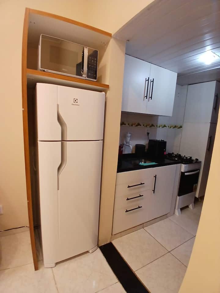 Skvelý apartmán, pekne zariadený so všetkým potrebným vybavením, ktoré budete počas svojho pobytu potrebovať. Dobrá izba s internetom 500 mbps, 43-palcovou smart TV s Netflixom, 2 stoličkami, 1 pufom, stropným ventilátorom, kuchyňou v americkom štýle s kuchynskou doskou a vysokými lavicami na stolovanie, chladničkou, sporákom, sušičom vlasov, žehličkou, mikrovlnnou rúrou, kávovarom, sendvičovačom, práčkou, príborom, pohármi, riadom a ďalším vybavením. Veľká kúpeľňa s teplou a studenou vodou, dvojlôžková izba s komodou, 32-palcová inteligentná TV so službou Netflix, klimatizácia a stropný ventilátor a šatník s vešiakmi. Úplne tichý apartmán s výhľadom na zeleň, les a hory v plne obytnej budove a s 24-hodinovým vrátnikom. Nachádza sa 120 metrov od stanice metra Cardeal Arcoverde a ďaleko od komunít. V blízkosti hotela Copacabana Palace, ktorý je jedným z najnavštevovanejších a najbezpečnejších hotelov v okolí. Pohodlie a komfort zaručené!