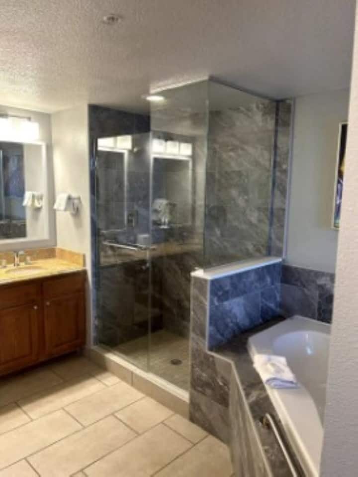 Či už prichádzate do Vegas na podujatie ako EDC, alebo na oddychový výlet, tento rezort vhodný pre rodiny a náš 2-izbový apartmán Deluxe s 2 kúpeľňami vám zaistia nezabudnuteľný pobyt! Moderný interiér inšpirovaný Stredomorím a bazény ponúkajú pokojnú a luxusnú atmosféru. Skvelá poloha len míľu od kultového bulváru Las Vegas Strip – na Strip sa dostanete pešo alebo BEZPLATNOU kyvadlovou dopravou. Vybavenie ako v rezorte pre vaše pohodlie, viacero bazénov a víriviek a BEZPLATNÉ parkovanie pre môjho hosťa bez platenia poplatkov za rezort!