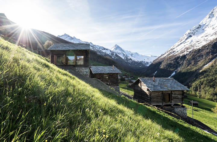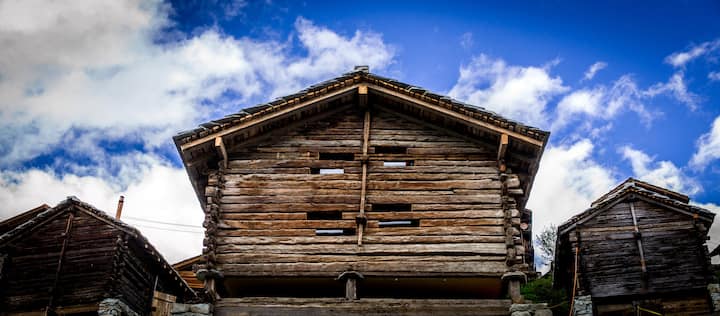 Celý objekt: zrub v lokalite Evolène, Švajčiarsko