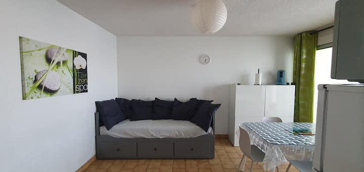 Prenájom T3 (deklarovaný v radnici ref. HUT1410HTF) sa nachádza na 2. poschodí s výťahom v zabezpečenej rezidencii le panoramic 2 s bazénom (otvorené od mája do 30. septembra 2025).