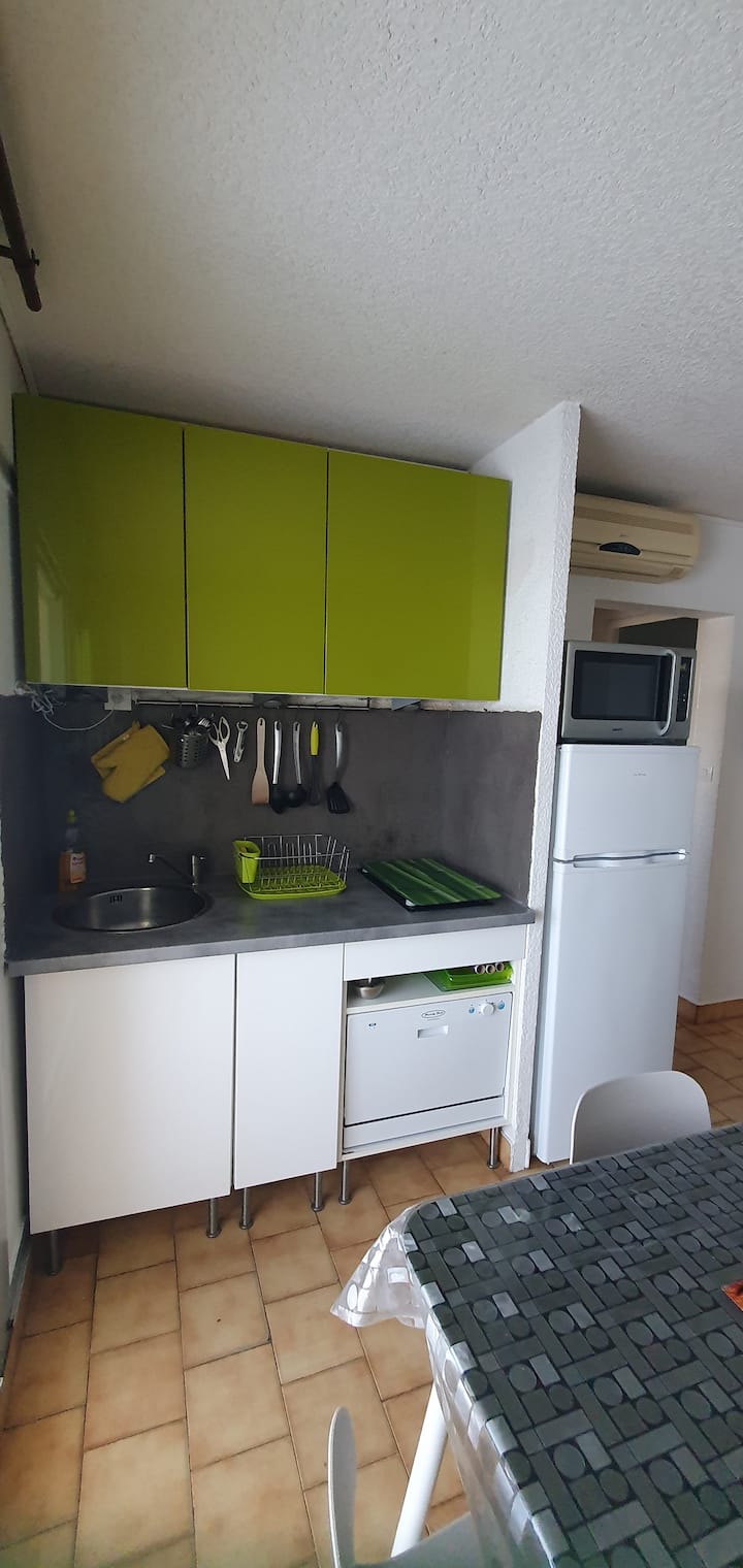 - 1 kuchyňa vybavená chladničkou s mrazničkou, rúrou + mikrovlnnou rúrou, 2 keramickými varnými doskami, umývačkou riadu na 6 príborov, kávovarom senseo a práčkou,