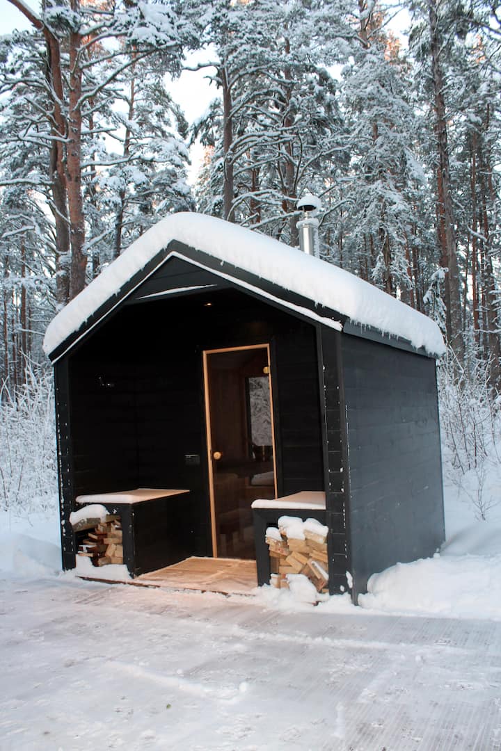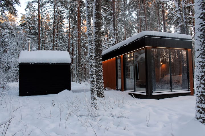 Minidom so saunou v borovicovom lese