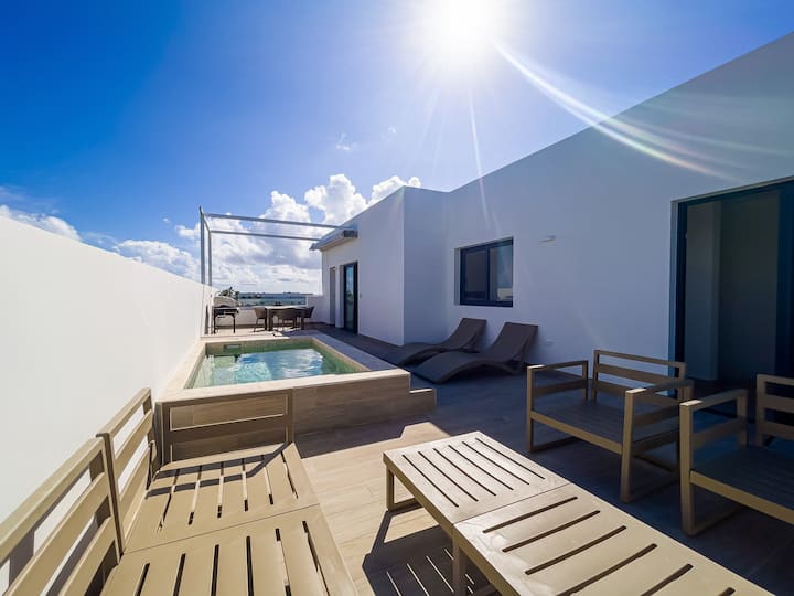 Zažite pôvab tohto ohromujúceho dvojpodlažného podkrovného apartmánu so súkromnou strešnou oázou, osviežujúcou studenou vodou Picuzzi, úchvatným panoramatickým výhľadom a krátkou prechádzkou na pláž.