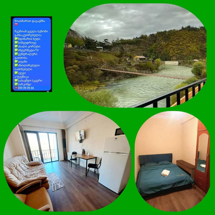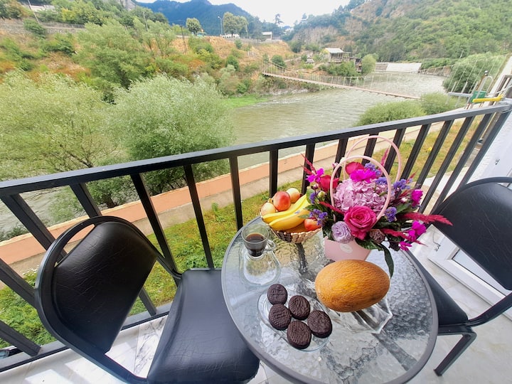 výhľad na rieku, hory, útulné