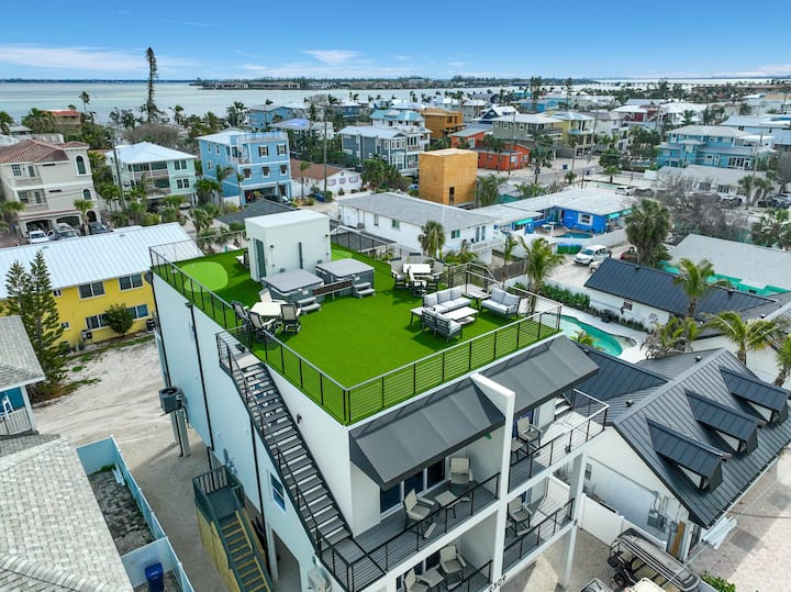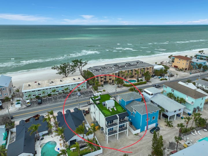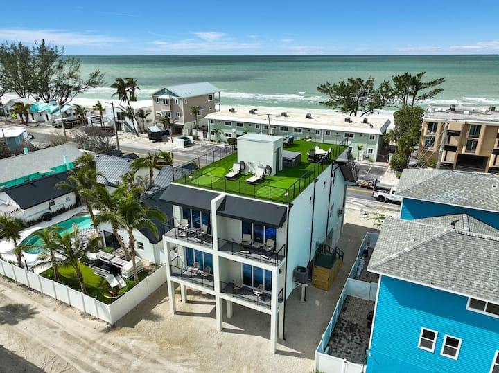 Premierový miestny manažér, Destination Paradise, vás víta v „Gulfside Sunset-A“… ohromujúcom dome na pobreží oceánu s šialeným 360-stupňovým výhľadom na Mexický záliv, centrum mesta Sarasota, špičku ostrova Anna Maria a most Sunshine Skyway v St. Petersburgu/Tampe! Toto 4-poschodové bývanie pojme až 10 osôb na každej strane! Môžete si prenajať #A alebo B s 3 spálňami a 3 kúpeľňami, ako aj rozkladaciu pohovku v obývacej izbe a matnú posteľ v dome pri bazéne alebo na OBOCH STRANÁCH s celkovým počtom 6 spální, 6 kúpeľní a 10 lôžok!! „Gulfside Sunset“ sa nachádza priamo na pláži Bradenton Beach a len pár minút od Holmes Beach a ostrova Anna Maria.
