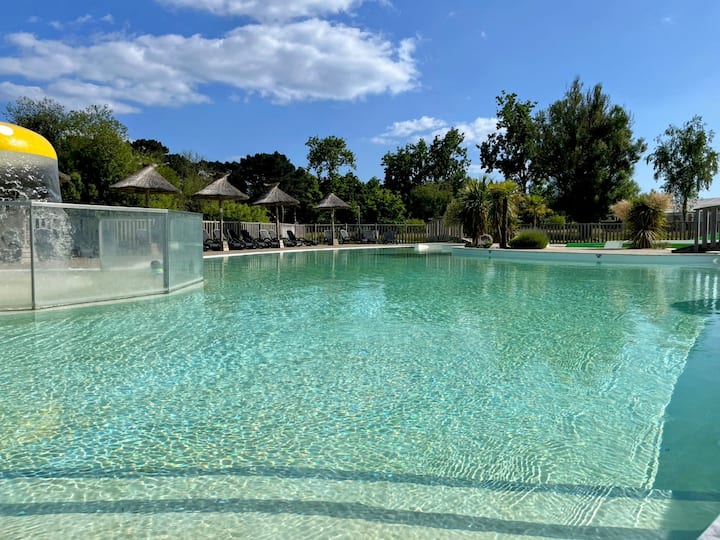 Mobilný dom s 2 spálňami, pláž na dosah a bazén
