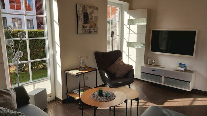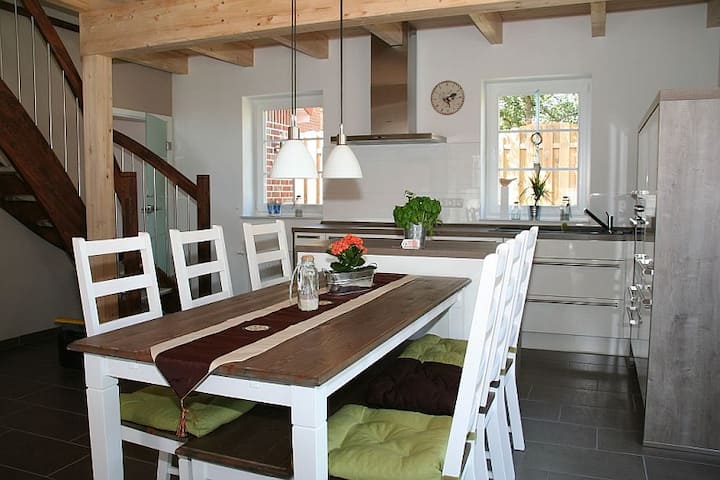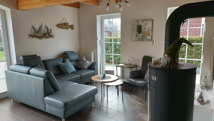 Vysoko kvalitný a láskyplne zariadený rekreačný dom Stella Maris (Meerstern) sa nachádza na nádhernom záhradnom pozemku pri pamiatkovo chránenej vodnej veži na severe v pešej vzdialenosti od historického trhového námestia a centra dediny. Na pláže v Norddeich sa ľahko dostanete na bicykli.