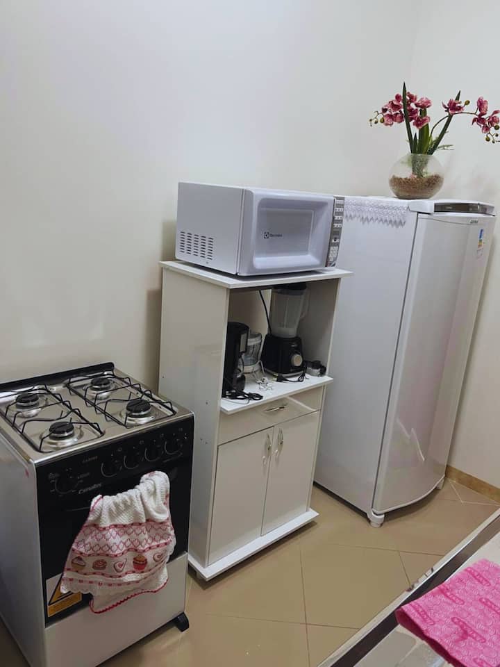 🏡 Vitajte v Carinho & Conforto, apartmáne navrhnutom s láskou, ktorý privíta vás a vašu rodinu. Ideálne pre ľudí, ktorí hľadajú pokoj, bezpečnosť a dobrú polohu: 🌳300 metrov od parku Anauá,🏁 1 km od námestia Ayrtona Senny,🏙️ 2 km od centra mesta Boa Vista, v 🍻 blízkosti reštaurácií a barov. Útulný apartmán ponúka: 🛏️ 1 manželskú posteľ, plne vybavenú kuchyňu, 🍽️ 📺 televízor pre vašu zábavu, čisté🧼 prostredie, láskavo pripravené na váš príchod.