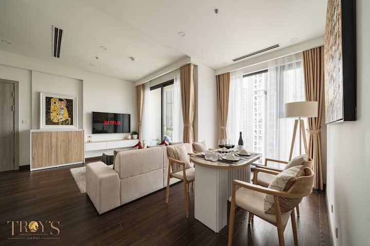 – Úplne nový apartmán s 2 spálňami a 2 kúpeľňami nachádzajúci sa v Masteri West Heights, Smart City, Tay Mo s luxusným interiérom a najkrajším výhľadom na jazero v tejto oblasti, ktorý vytvára pokojný obytný priestor plný sofistikovanosti.