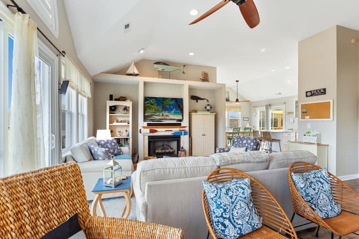Pridajte sa k nám a privítajte späť ubytovanie s raňajkami Oasis by the Sea! Toto skvelé bývanie so 4 spálňami a 3 kúpeľňami sa nachádza v pešej a cyklistickej vzdialenosti od všetkých reštaurácií a obchodov v Duck a môže sa pochváliť súkromným bazénom a vírivkou. Užite si vynikajúcu polohu v Duck okrem krásnej slnečnej izby a množstva zábavných vonkajších hier, ktoré si môžete zahrať s celou rodinou, vrátane hádzania podkov a vreciek! Využite tiež komunitné vybavenie Ocean Crest vrátane prístupu na pláž (s vyhradenými parkovacími miestami) podľa poradia príchodu len 2 minúty jazdy od hotela, komunitného bazéna olympijskej veľkosti a tenisových a pickleballových kurtov v pešej vzdialenosti od domu!