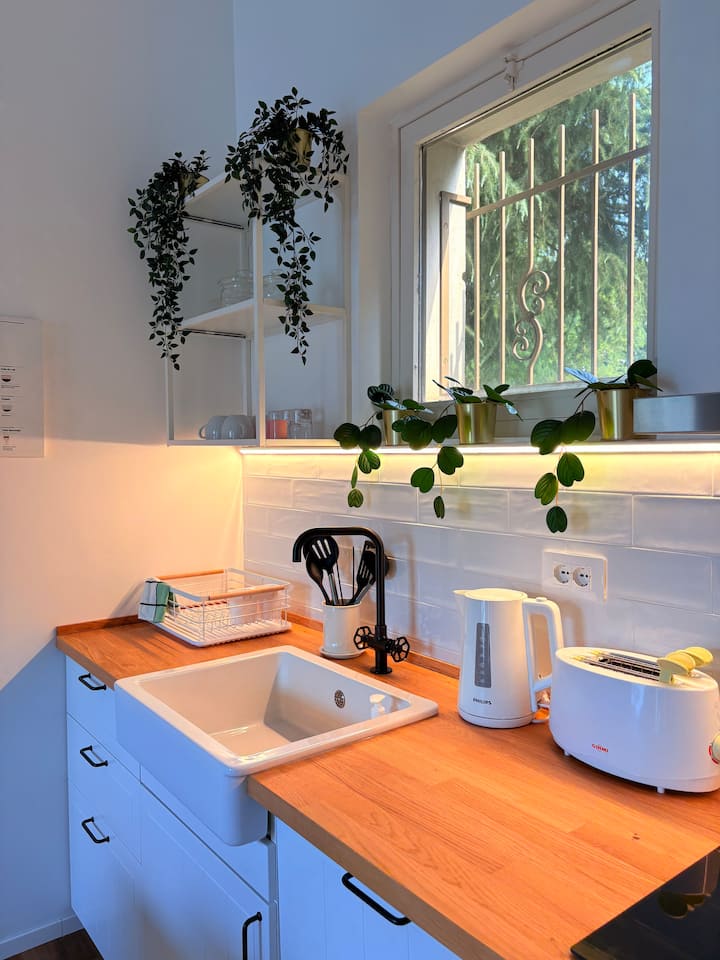 • Indukčný sporák, chladnička, rúra, umývačka riadu, rýchlovarná kanvica a hriankovač