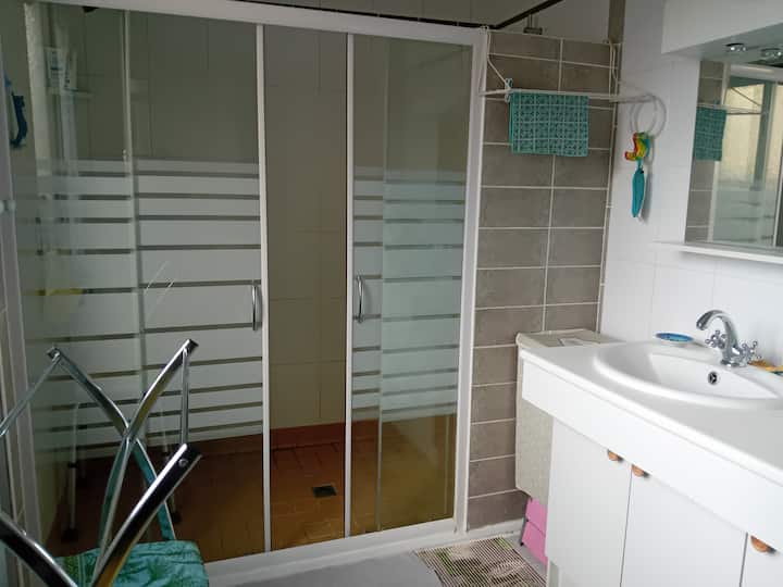 This place has a half bathroom that’s connected to your room.