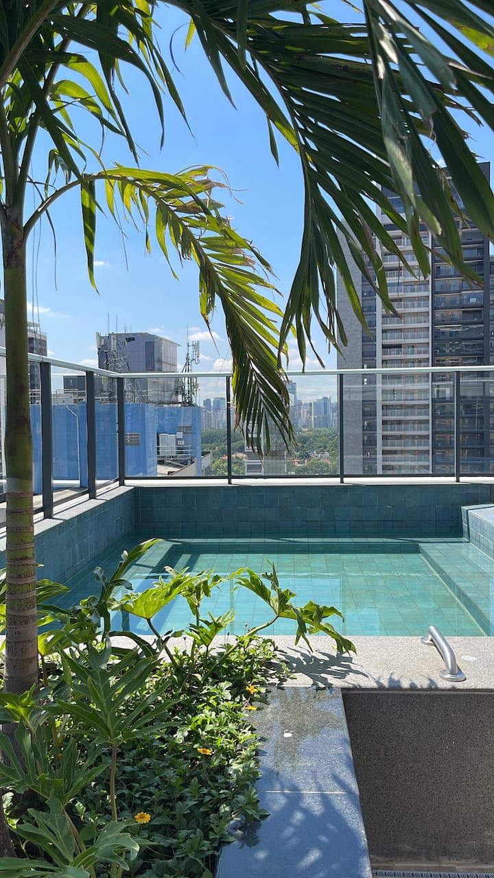 Štúdio s bazénom v Pinheiros 6 minút chôdze od metra