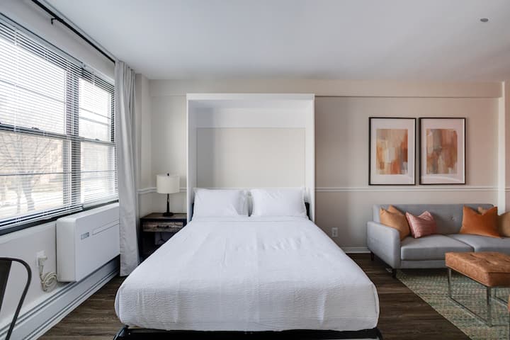 Vitajte v štúdiu The Oriole Nest! Tento novo zrekonštruovaný a profesionálne zariadený priestor ponúka plný prístup k vybaveniu apartmánov Broadview vrátane posilňovne a práčovne. Vďaka veľkým arkierovým oknám je štúdio svetlé, útulné a priestranné – ideálne na pohodlný pobyt.