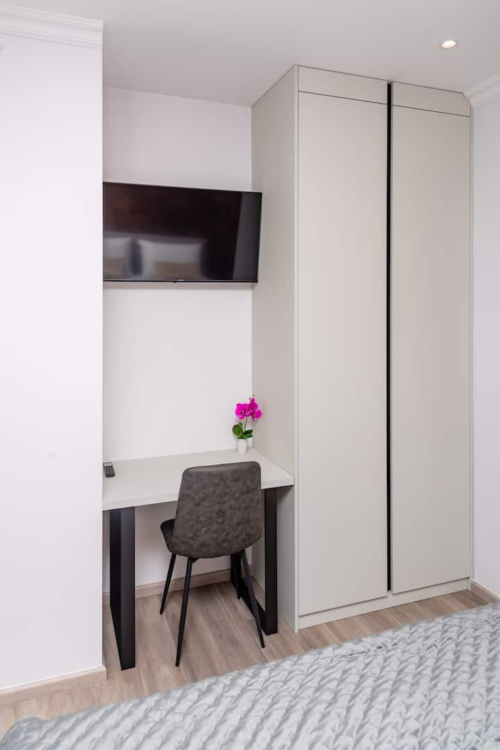 Pobyt v apartmáne na 4. poschodí – mesto vonku, pokoj vo vnútri