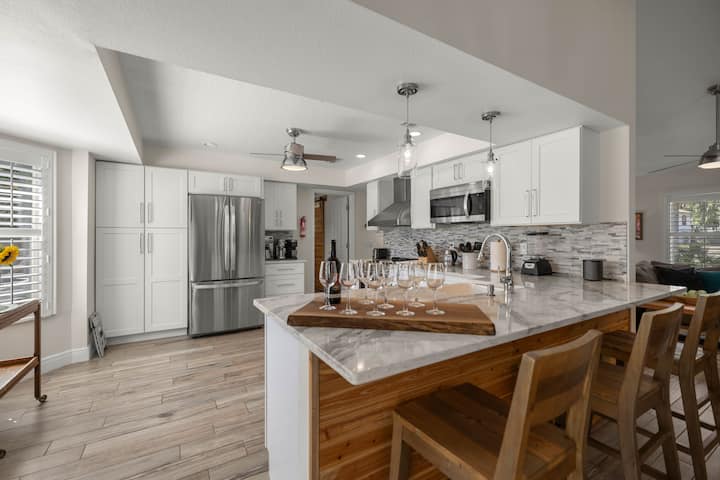 Vitajte v našom útočisku v srdci Ocaly! Toto priestranné bývanie vhodné pre rodiny sa nachádza v centre mesta, len pár krokov od historickej štvrte Ocala. S vysokými stropmi, otvoreným pôdorysom, tromi priestrannými spálňami a extra veľkým dvorom je ideálny na relaxáciu a veľa rodinnej zábavy (vrátane vašich chlpatých priateľov). Toto krásne aktualizované bývanie ponúka všetko, čo vaša rodina bude potrebovať, aby sa cítila ako doma, a poloha je ideálna na vychutnanie si všetkého, čo Ocala ponúka.