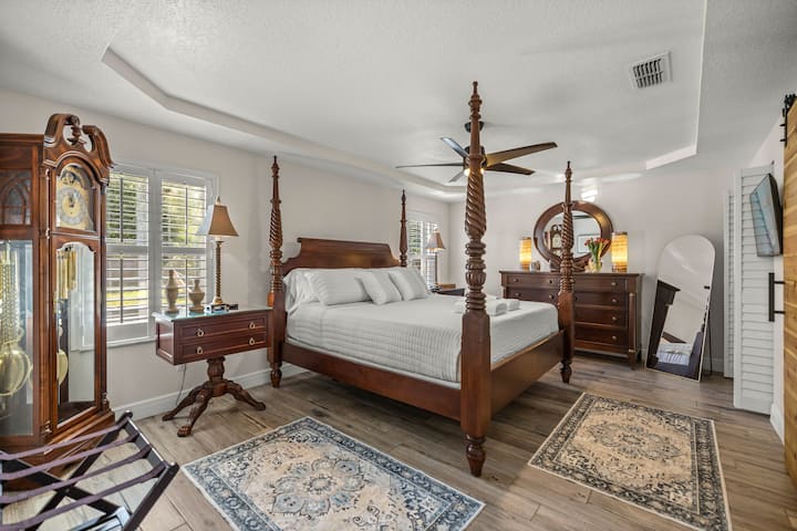 Váš dokonalý výlet do Ocala čaká - dokonalá zmes pohodlia, elegancie a relaxácie. Tento príjemný výlet je určený pre rodiny a priateľov, aby si vytvorili nezabudnuteľné spomienky. Od priestranných obytných priestorov až po pokojnú oázu na dvore, každý detail bol starostlivo vybraný pre dokonalý pobyt. Či už objavujete historickú štvrť, alebo sa jednoducho uvoľňujete vo vírivke, každý okamih tu pôsobí ako zaslúžený únik.